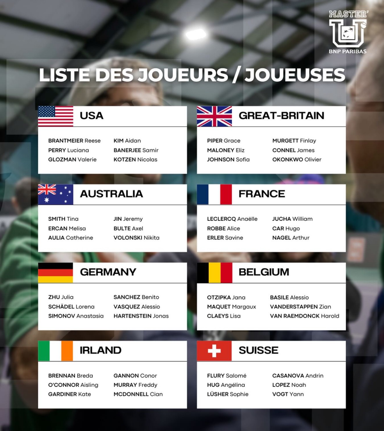 Let’s discover the 48 players of the 18th Master’U BNP Paribas.